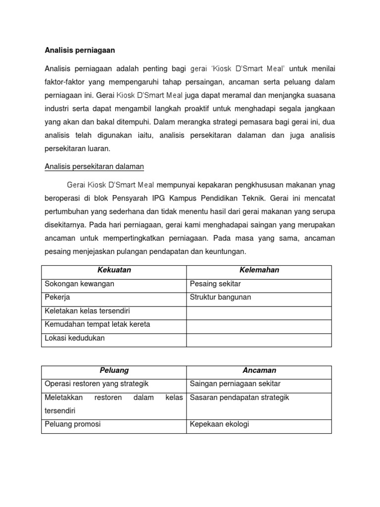 37 Faktor yang Bab 3 Mempengaruhi Perubahan Visi Misi QR Code dan Objektif Perniagaan Analisis SWOT. Untuk bersaing dengan perniagaan yang sedia ada kita perlu kreatif menghasilkan dan mencipta produk makanan yang tidak pernah wujud dalam pasaran. KEUSAHAWANAN 4 SOALAN MAKSIMA16M-24M 1.